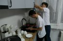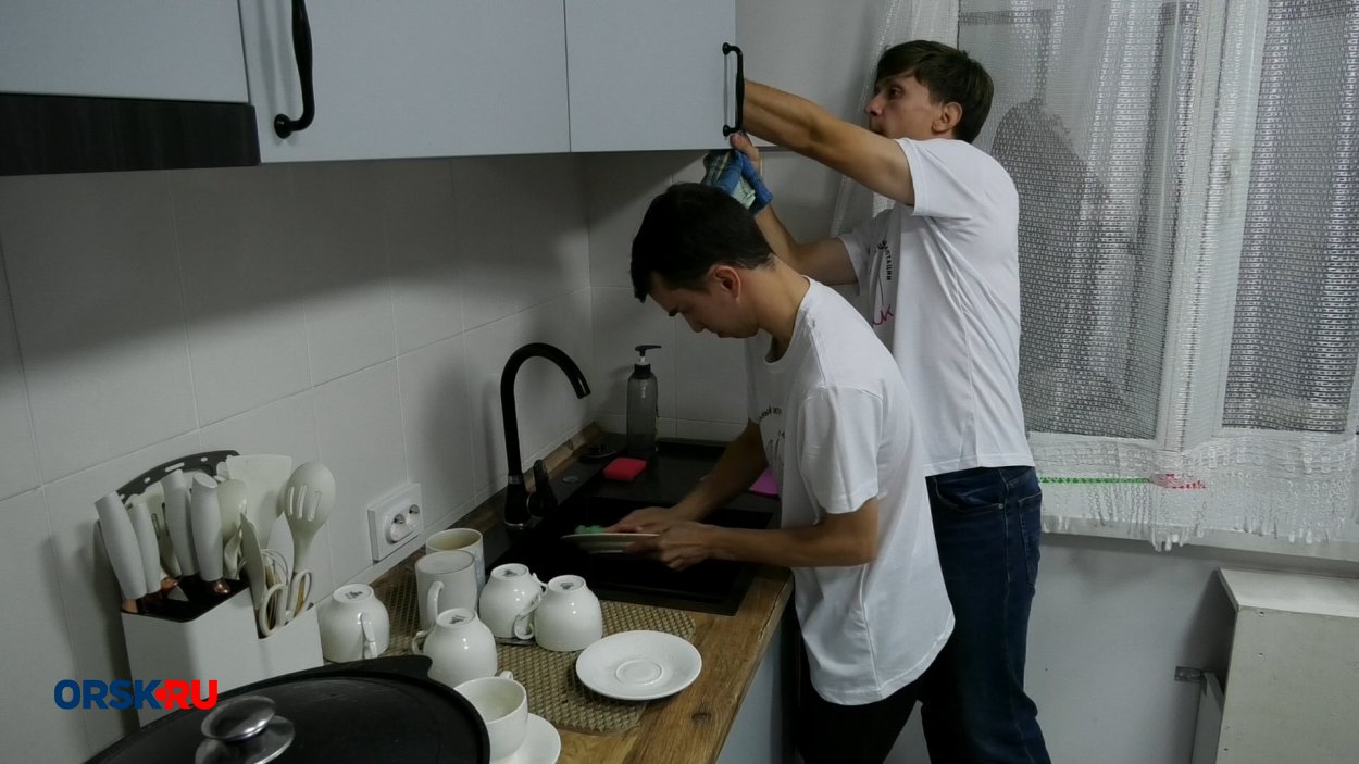— Одни, да! Я только приехала, холодильник проверила, но теперь точно знаем, когда тут Юрка, тут есть и еда, и чистота, всё по полочкам. Хотя Юра у нас недееспособный, но он готовит на всех. Они готовят вдвоем обычно, но сегодня утром говорит: «Мам, я же уже привык готовить на всех». Тут и каша, и суп, и компотик, и всё, что хочешь.