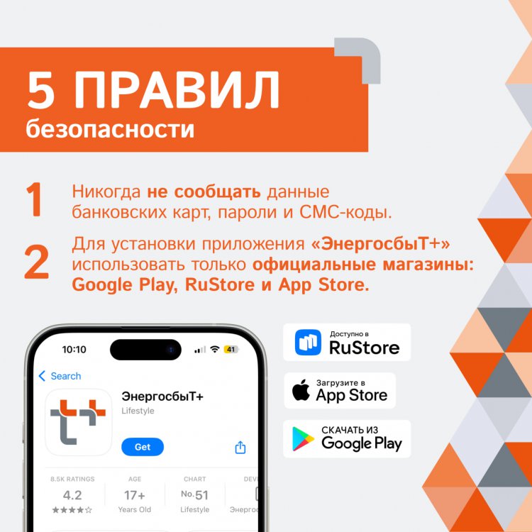 2. Для установки приложения «ЭнергосбыТ+» использовать только официальные магазины: RuStore, Google Play и App Store.