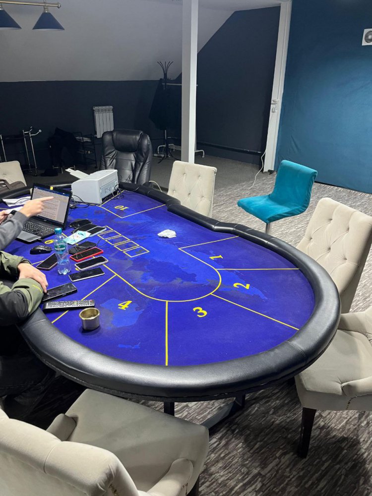 В ходе обыска правоохранители изъяли 10 покерных столов, фишки, карты, мобильные телефоны, деньги и даже молоток.