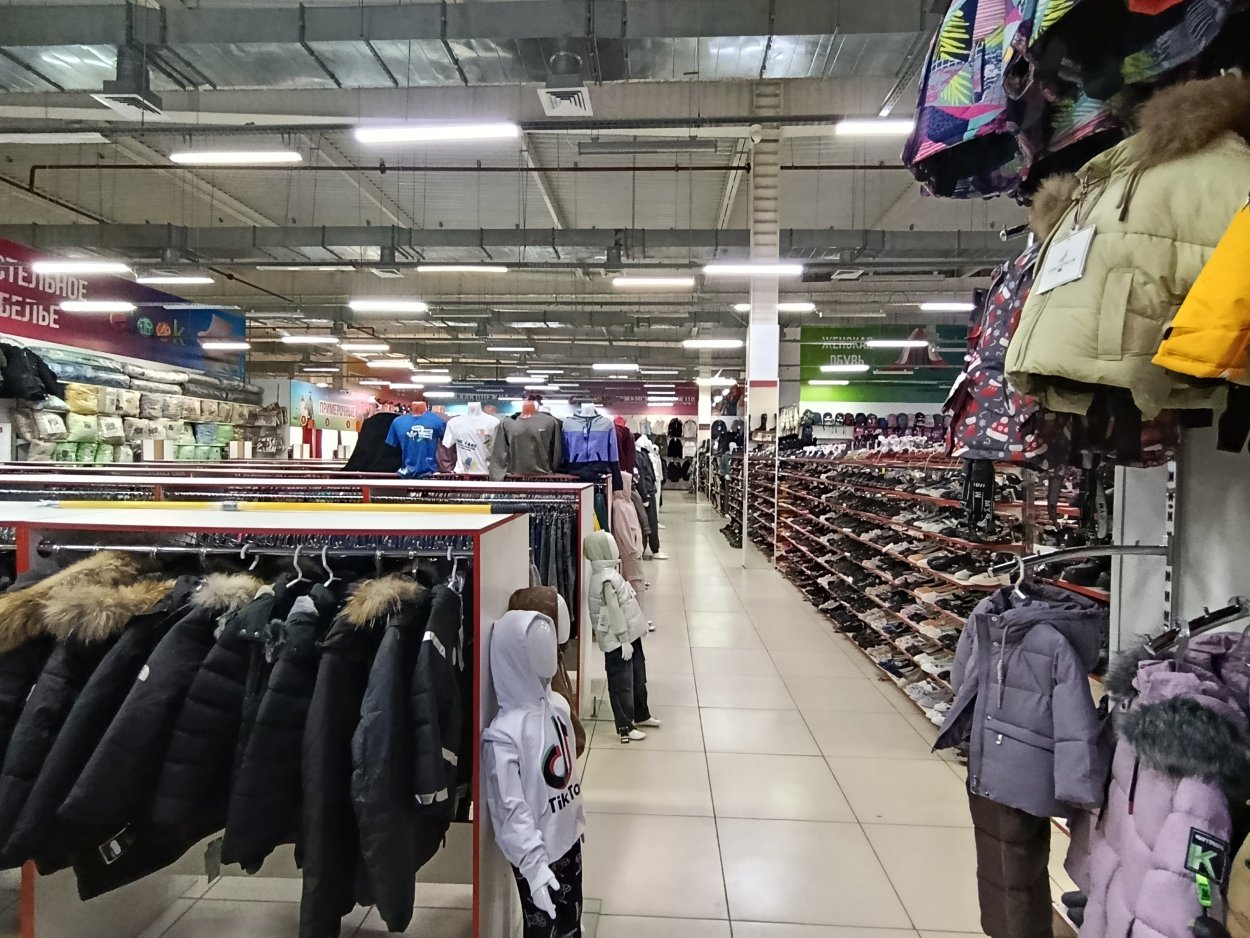 Большой ассортимент женской и мужской одежды: джинсы, футболки, спортивные костюмы, джемперы, нижнее бельё и носки, пуховики и куртки, которые защитят от холода и подчеркнут вашу индивидуальность. Здесь можно собрать образ для работы, отдыха и активных прогулок. Для модниц в магазин завезли трендовые эко-шубы. Современные модели — легкие, стильные и очень уютные, они идеально подойдут для холодных зимних дней.