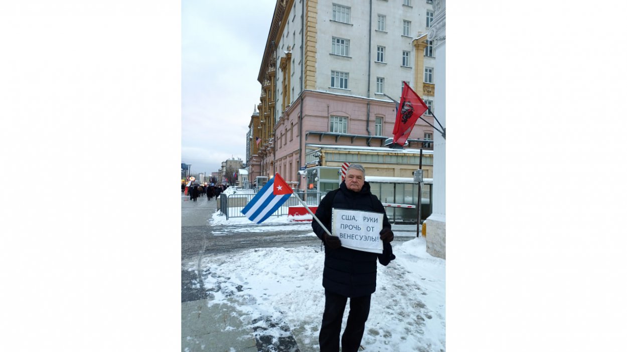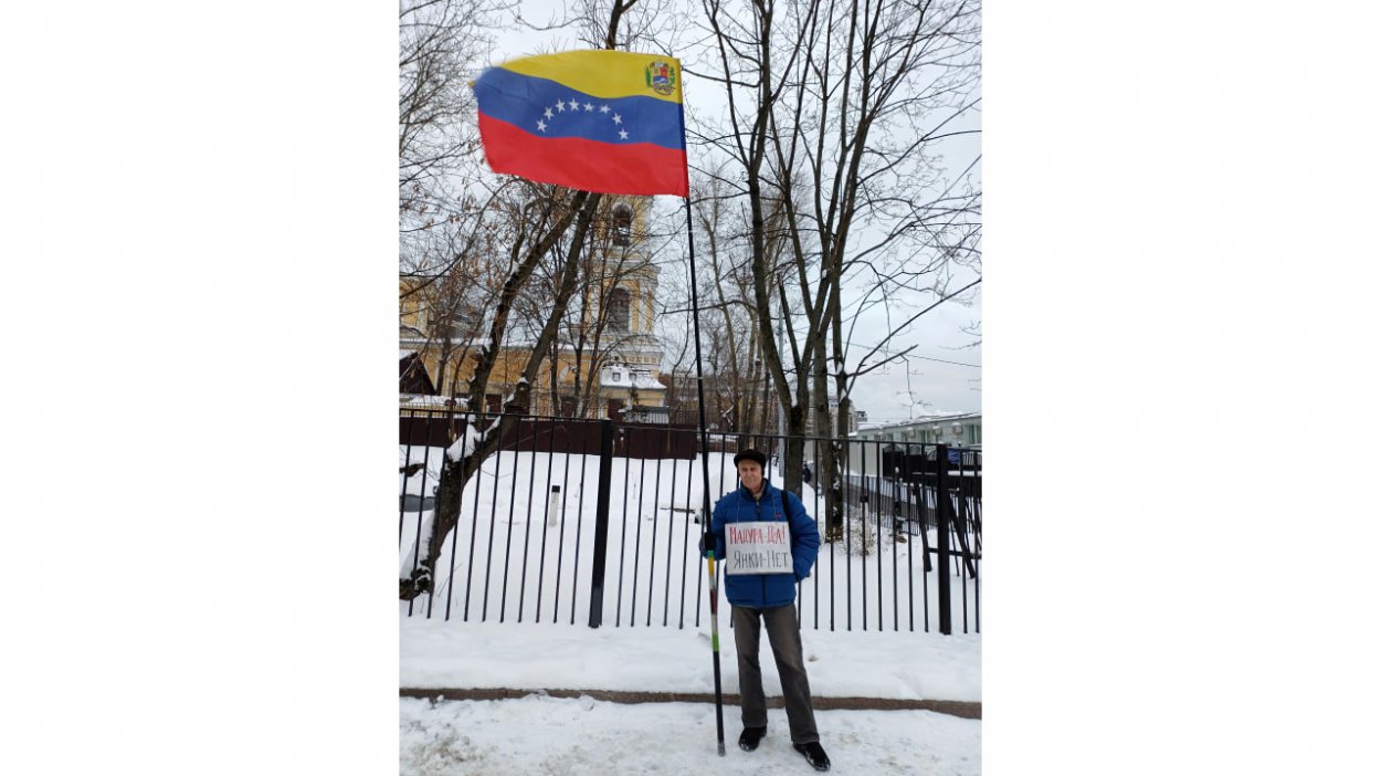Каждый день здесь, недалеко от Нового Арбата, стоит активист какого-нибудь общественного движения с плакатом. Сейчас таких трое – с разных сторон зданий посольского комплекса. Стоят полдня, потом их меняют. Охотно фотографируются. Делятся своим мнением: почему они тут, почему Трамп на Мадуро «прыгнул». А за ними из одного даже днем освещенного «американского» окна смотрят два манекена. Зачем? Пикетчики, к этому уже привыкшие, не ведают. «Что с них взять, они же фанерные», - к кому относилась фраза одного из них, не знаю.