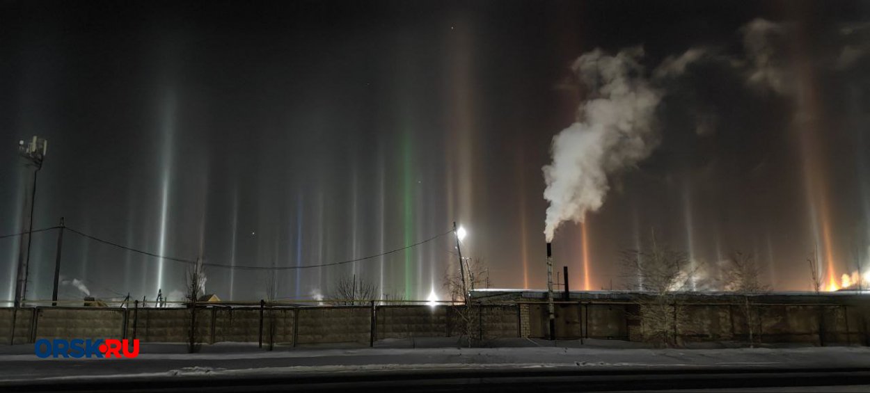 В Орске заметили необычное природное явление — световые столбы