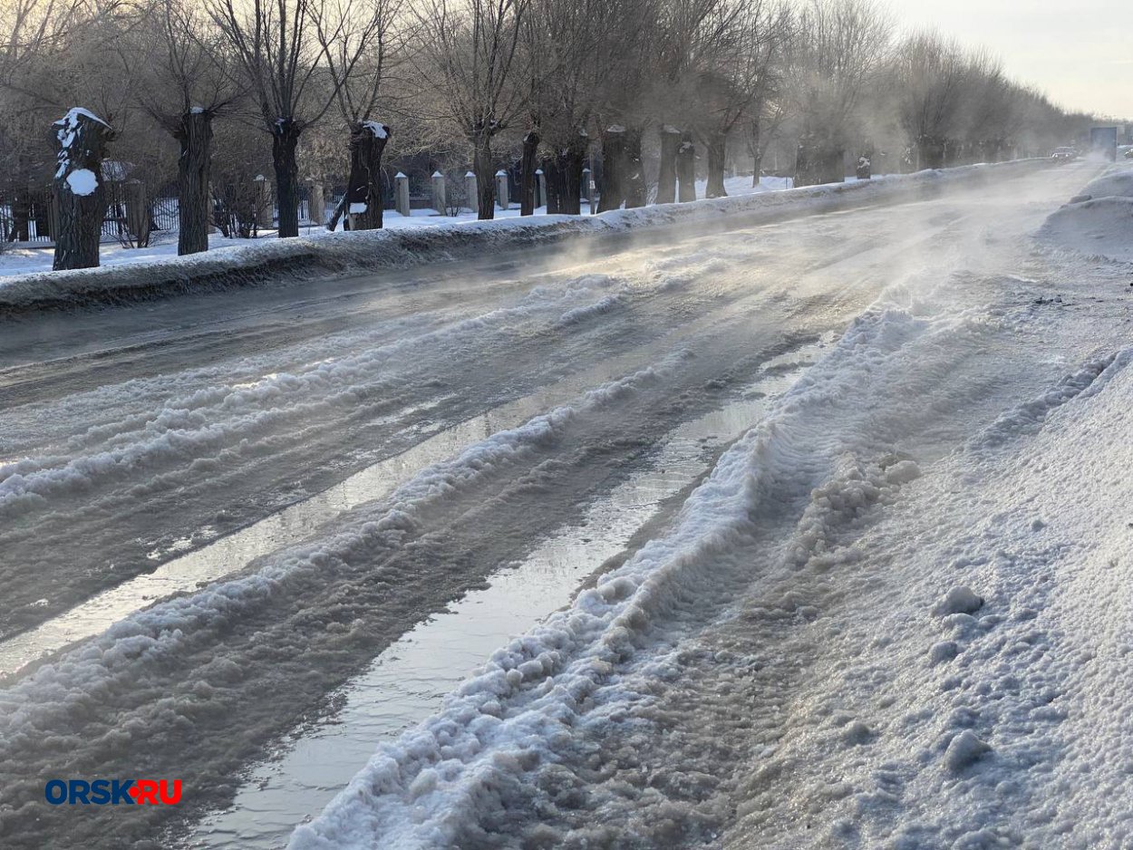 В центре Орска затопило проезжую часть. Коммунальная авария произошла в районе перекрестка улиц Станиславского и Нефтяников. Из-за утечки на дороге образовалась снежная каша.