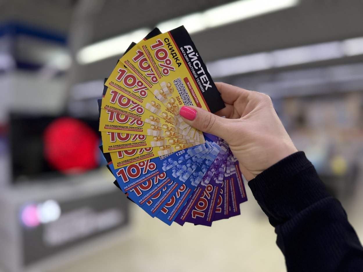7 и 8 марта мы превращаем шопинг в игру, где наши покупатели выигрывают! Приходите в «Айстех» за техникой, а уходите с подарками. Мы гарантируем: скучно не будет. Правила простые до безобразия: Выбираете товар* -> Идете на кассу.Оплачиваете. -> Получаете скретч-карту -> Трете монеткой (или ноготком) -> Улыбаетесь. Главный вопрос: ЧТО ВНУТРИ?