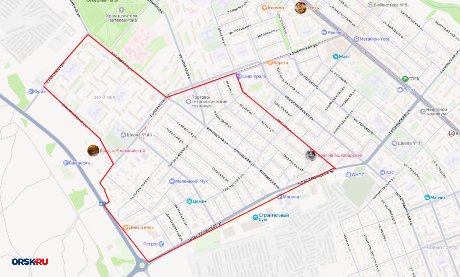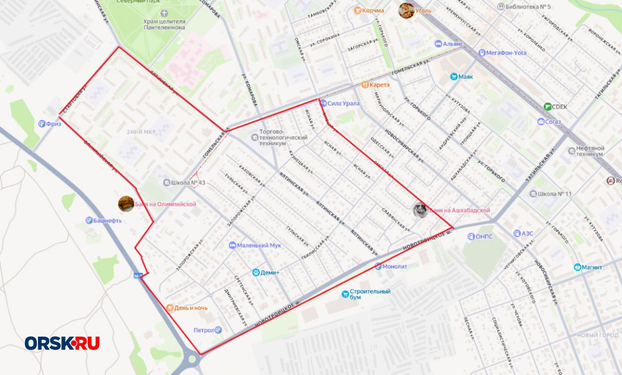 - от Новотроицкого шоссе до ул. Стартовой