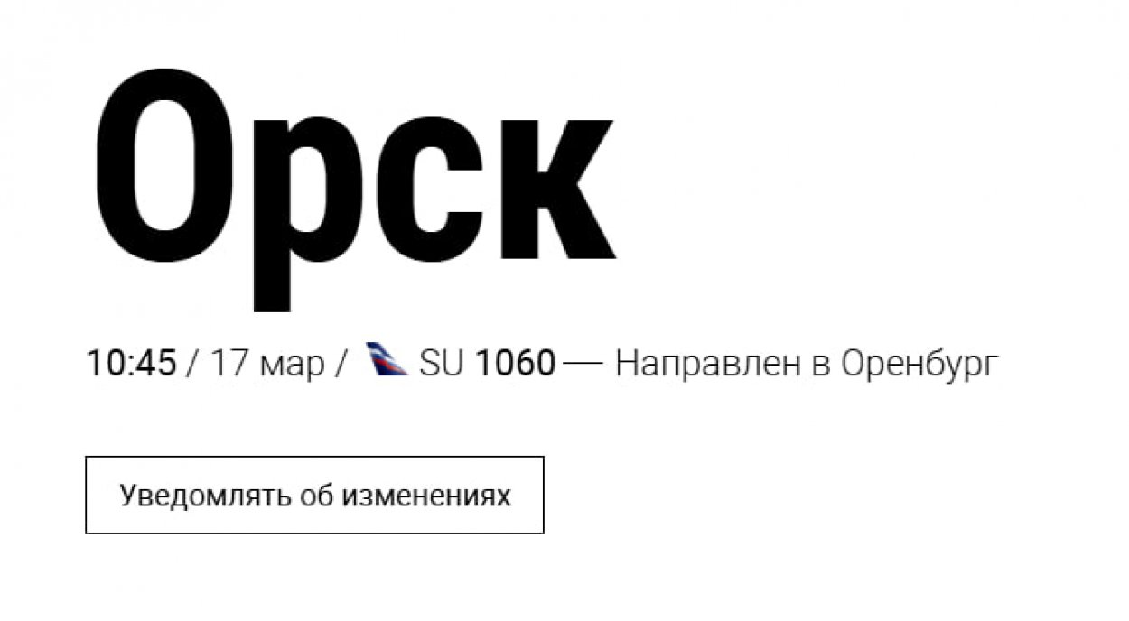 В итоге рейс Москва — Орск направили в Оренбург. Причина — погодные условия.