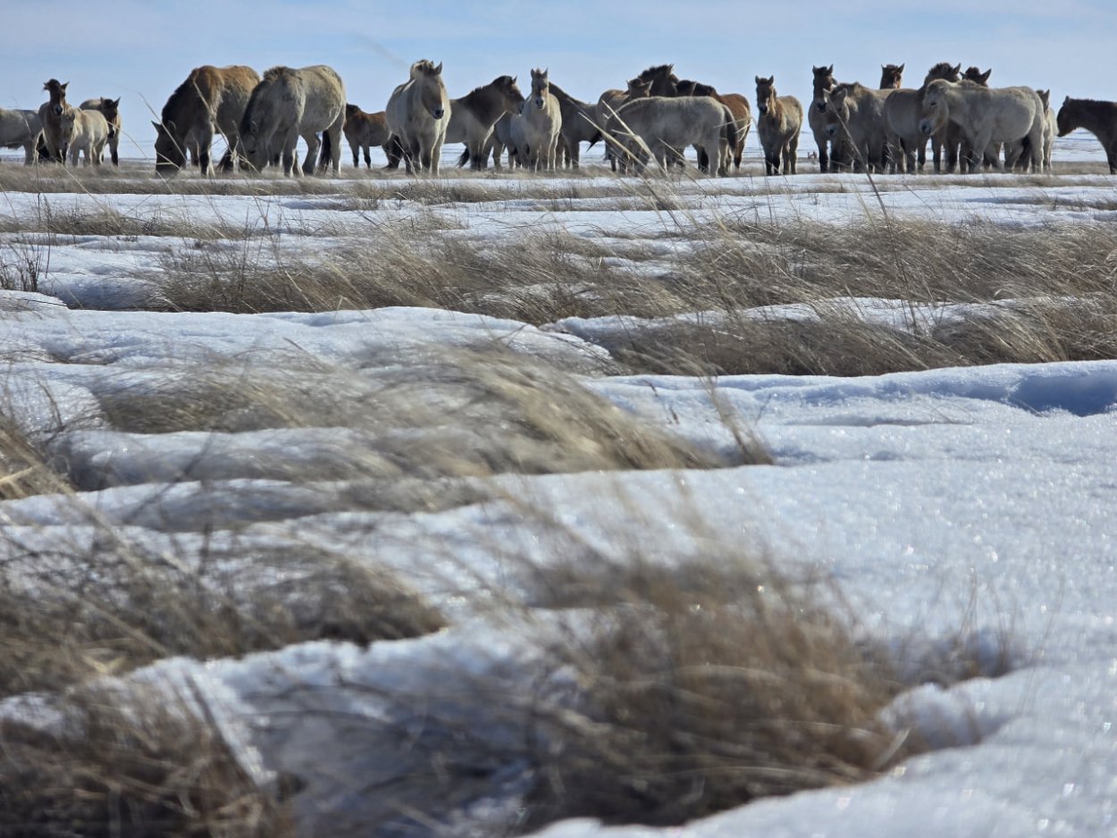 В «Центре реинтродукции лошади Пржевальского» оренбургского заповедника сообщили: наконец-то дикие лошади вышли из зимнего режима! Зима окончательно позади, и животные, пережившие холода, заметно активизировались.