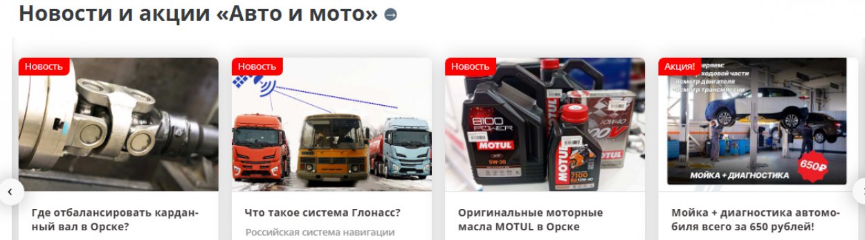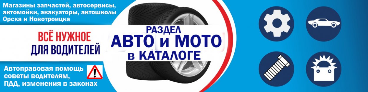 Водите автомобиль? Значит вам будет полезен Автораздел в Каталоге организаций (18+) на ОРСК.РУ, где всегда можно найти Пункт техосмотра, магазин запчастей, авторазбор или автосервис. А выгодные предложения от автомагазинов, сервисов и автосалонов помогут водителям сэкономить. Кстати, Каталог организаций размещен и на сайтах Гай.рф, NTSK/RU, 1743.ru.