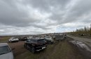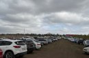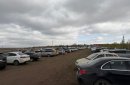 Автомобили быстро заезжают на парковку — мест занято много, однако пробок не наблюдается, обстановка остаётся спокойной и контролируемой.