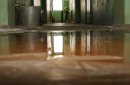 Вот пошла вода, весь потолок натяжной надулся, вот такие, извините за выражение, не буду выражаться... пришлось пробивать потолок, проделать дырку и чтобы вода спускалась у меня в ведро. Вот так вот произошло. Течёт весь подъезд, и вот в квартире соседки нету, наверное, дома, но наверняка тоже затопило всю квартиру.